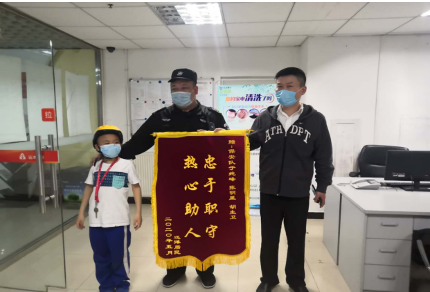 2020年5月15日晚上9点40分左右,驻远洋山水北区项目队长张明星接到物业通知,园区3号楼4单元一个叫王某的小朋友不慎走失,家人非常着急。队长接到消息后,马上组织10名巡逻队员分3个小组从孩子有可能出去的路线分头寻找。经过两个小时的细致寻找,终于在一超市的拐角处找到正在哭闹的孩子。经和照片核实,正是丢失的小孩。巡逻队员于纯峰一边安抚孩子的情绪一边联系孩子的母亲。10多分钟后,孩子的母亲神色慌张的跑了过来,一把抱住仍在哭泣的孩子,泣不成声。大约过了3分钟,才恋恋不舍的将孩子放下,突然大声地说“谢谢你们,我以为再也见不到孩子了”。这时孩子的爸爸也赶了过来,看到失而复得的孩子,立即从兜里拿出一沓现金往每个队员的手里塞,大家异口同声的说了句“这是我们应该做的”,然后静静地回到自己的工作岗位。业主为表感谢特地送来锦旗。“想客户所想,急客户之所急”是我们一贯的服务理念。