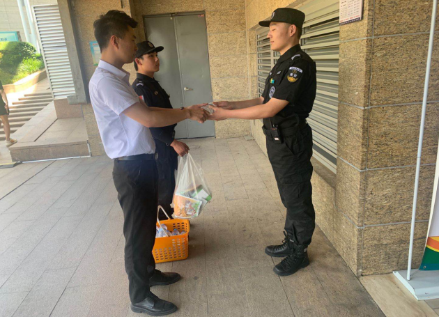 近期,炎热的高温天气给战斗在一线的保安员带来了严峻的考验,郑州天气更是达到了40余度。郑州千玺广场项目与超市签订协商冰冻矿泉水并购买了防暑药品为队员每日发放,确保保安员在高温季节圆满完成各项安保任务!