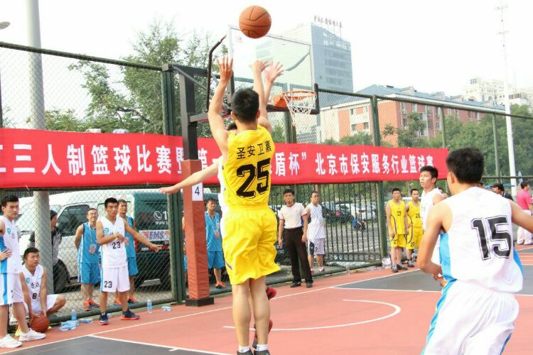 2016年9月25日上午8.00由北京总工会主办的2016年“工体杯”北京市职工三人制男子篮球比赛暨第一届“银盾杯”北京市保安服务行业篮球比赛在北京市职工服务中心篮球公园场地拉开帷幕。我公司代表北京市大兴区六支队伍之一,派出了领队(邢召谟)、教练(李建国)、队医(邢召谟)及队员(肖迪、郑凤舰、谢庆然、王浩楠、赵春明、包衡雨)一行9人参与了杯赛的全部三场比。