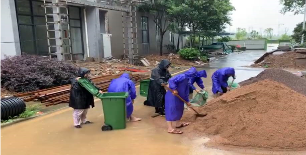 湖北驻梧桐湖项目紧急投入抗洪抢险:2020年7月8日,由于受持续降雨的影响,造成小区多出被淹,给业主的出行和生活带来很多不便,我司湖北驻梧桐湖项目紧急启动应急预案,带领多名队员投入抗洪抢险,当好业主的卫士!