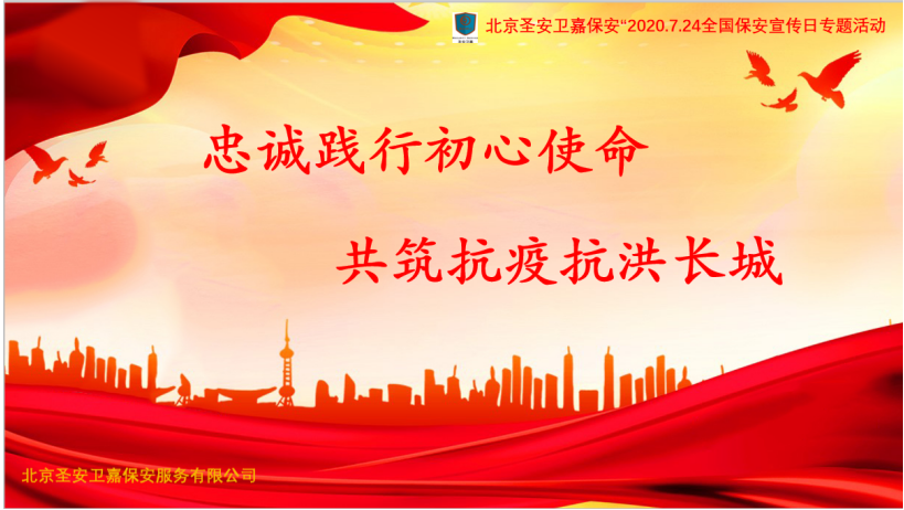 北京圣安卫嘉保安服务有限公司积极响应北京市治安总队号召,为迎接中国保安的第二个节日,公司董事长、总裁张延国,总经理李永伦,党支部书记邢召谟多次召开专题会议,部署工作。特别是今年抗疫抗洪这个重要时刻,一线保安员兄弟们冲在抗疫前沿,不怕苦和累,书写一个又一个动人的诗篇。