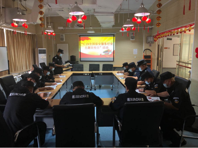 专题宣传进项目:“7.24”第二个保安宣传日来临之际,北京圣安卫嘉保安服务有限公司宣传队伍自7月20日起,去各项目、进社区广泛宣传,拍照380余张,悬挂横幅,展示展板,通过网站发布信息18条,点击量3667次,向保安协会投稿6件,组织保安员专题学习8次,参与人次753人次。